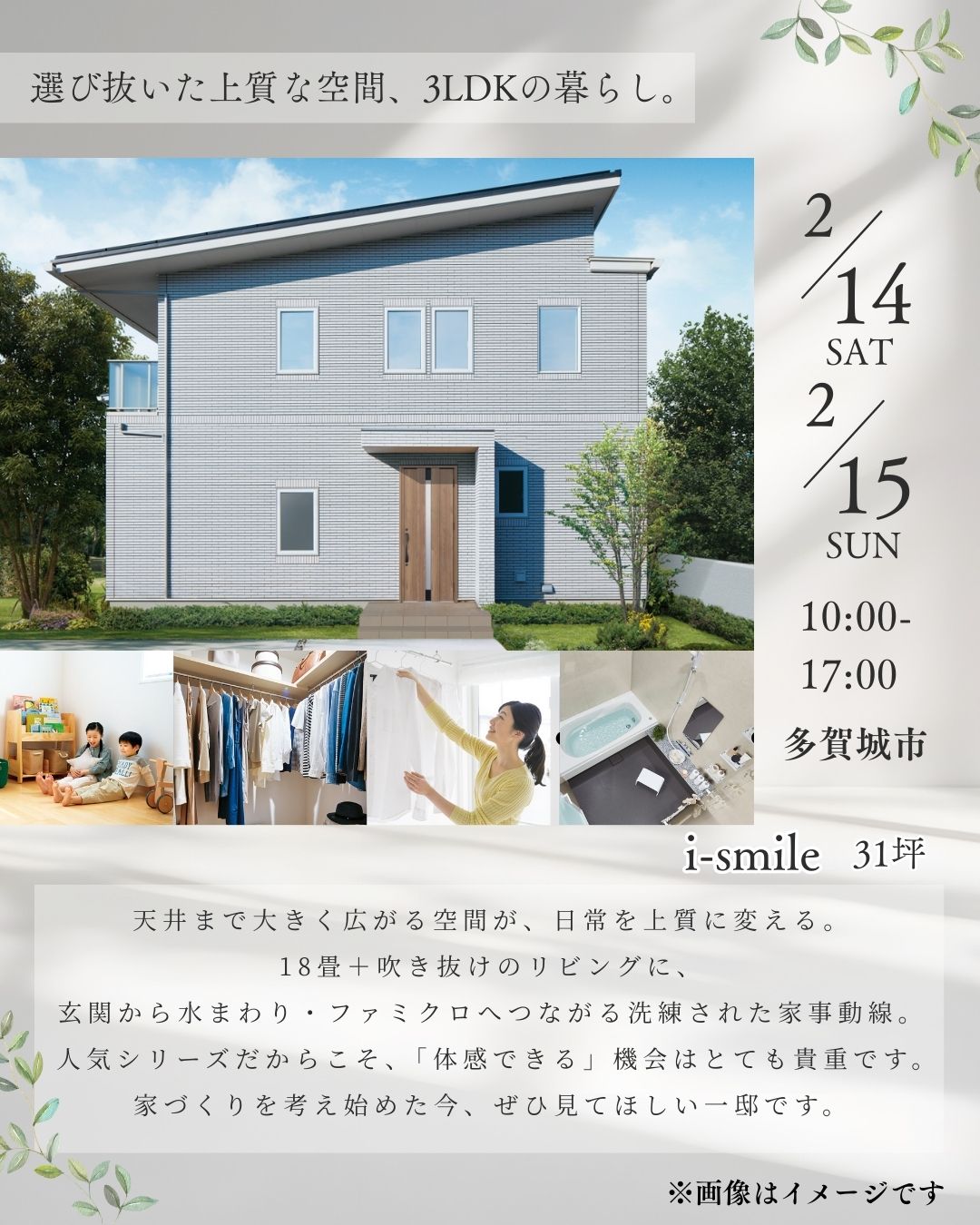 2月14日(土)・15日(日) 多賀城市【完成邸見学会】のお知らせ