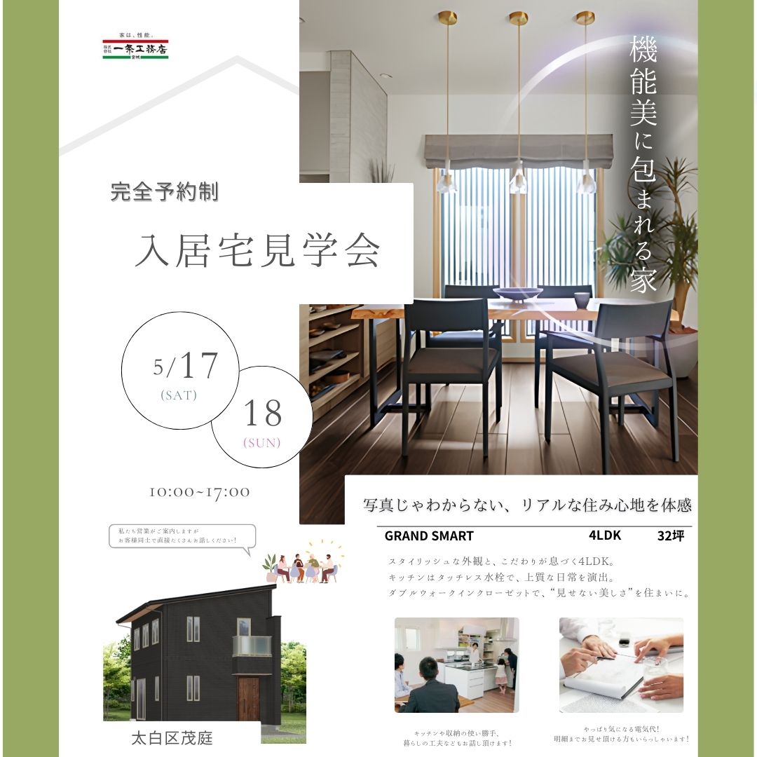 5月17日(土)・18日(日)太白区茂庭【入居宅見学会】のお知らせ
