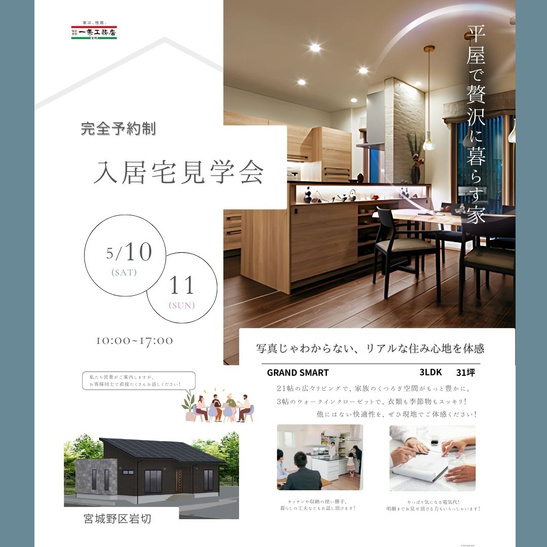 5月10日(土)・11日(日) 仙台市宮城野区岩切【入居宅見学会】のお知らせ