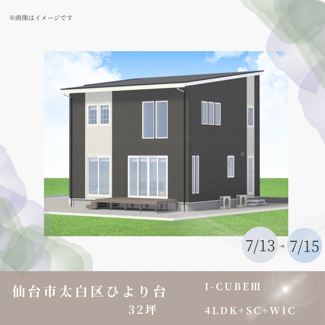 7月13日(土)・14日(日)・15日(月・祝)仙台市太白区ひより台【完成邸見学会】のお知らせ