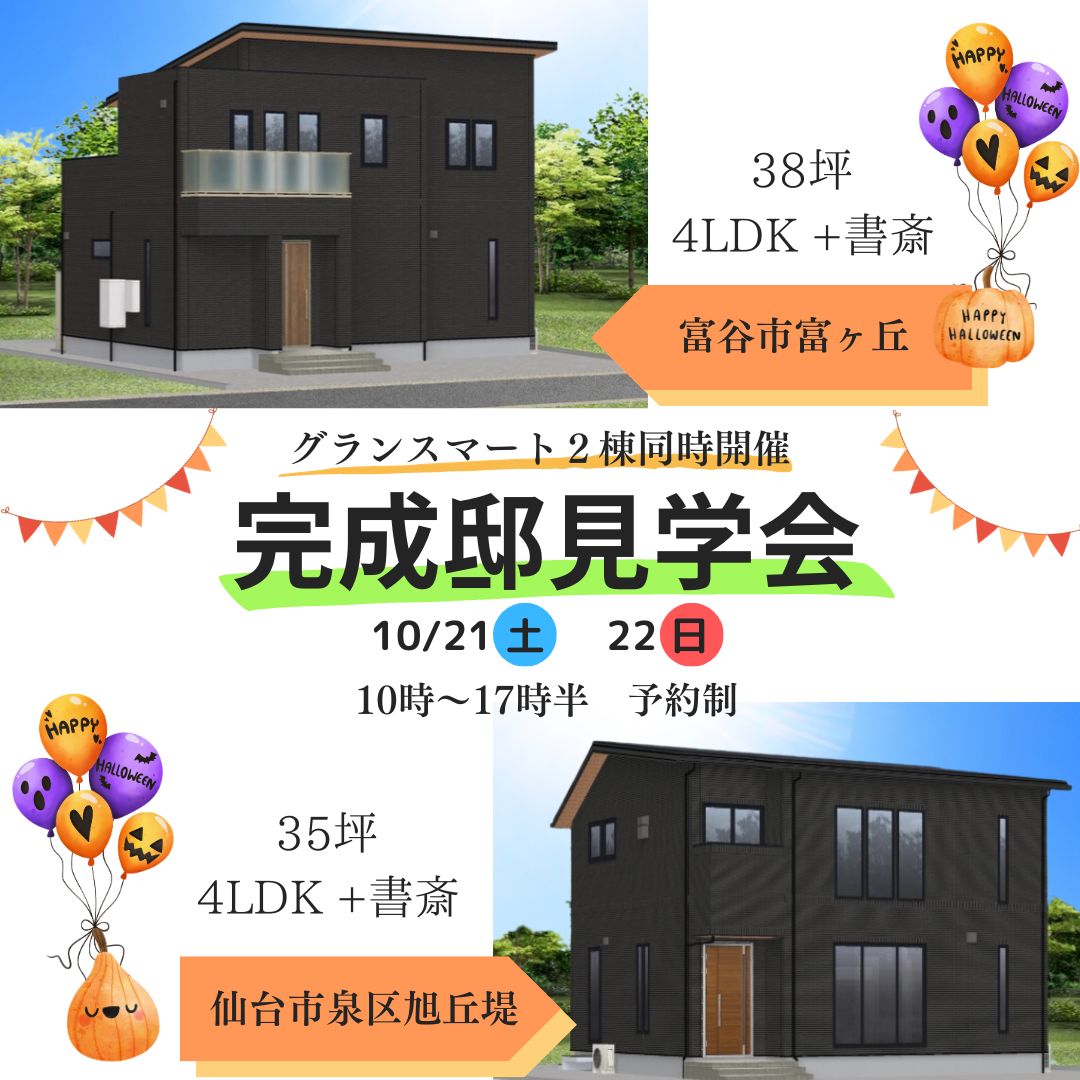 10月21日(土)・22日(日)2件同時開催 仙台市泉区旭丘堤・富谷市富ヶ丘【完成邸見学会】のお知らせ